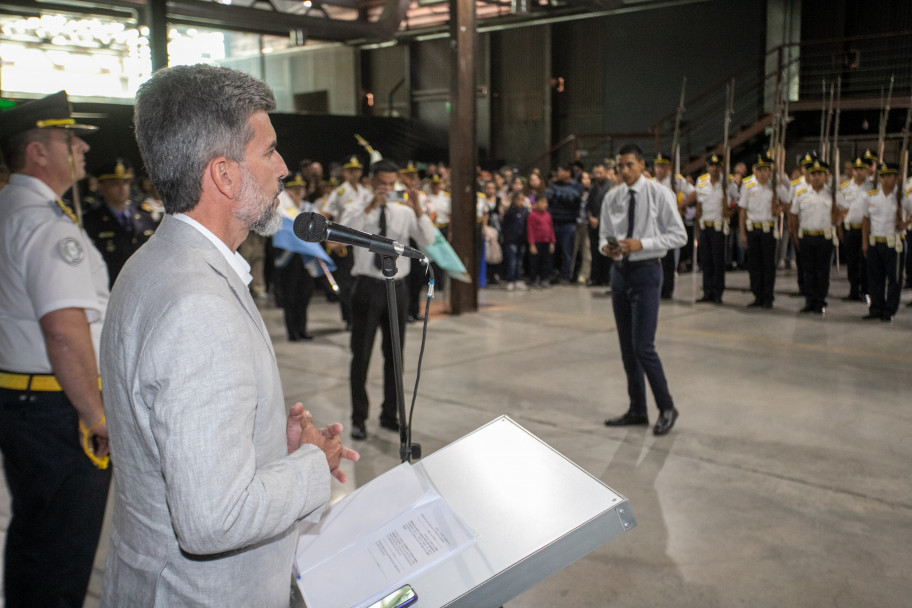 El acto, realizado en la Nave Cultural, contó con la presencia del subsecretario de Tecnología Aplicada a la Seguridad, Leandro Biskupovich, también estuvieron presentes el jefe policial de la Distrital I, Mario Riili; el director de Seguridad Vial, Fabián Becerra; la directora de Relaciones Institucionales, Belén González, y de Capital Humano, Adriana Bertolati. Además, el secretario de Seguridad Ciudadana de Ciudad, Horacio Migliozzi, autoridades y miembros de IUSP. También se presentó la Banda de Música de la Policía de Mendoza “Cabo 1° Gustavo Ramet” dentro de la formación del acto, con una impecable actuación, junto a cadetes y banderas de ceremonia.